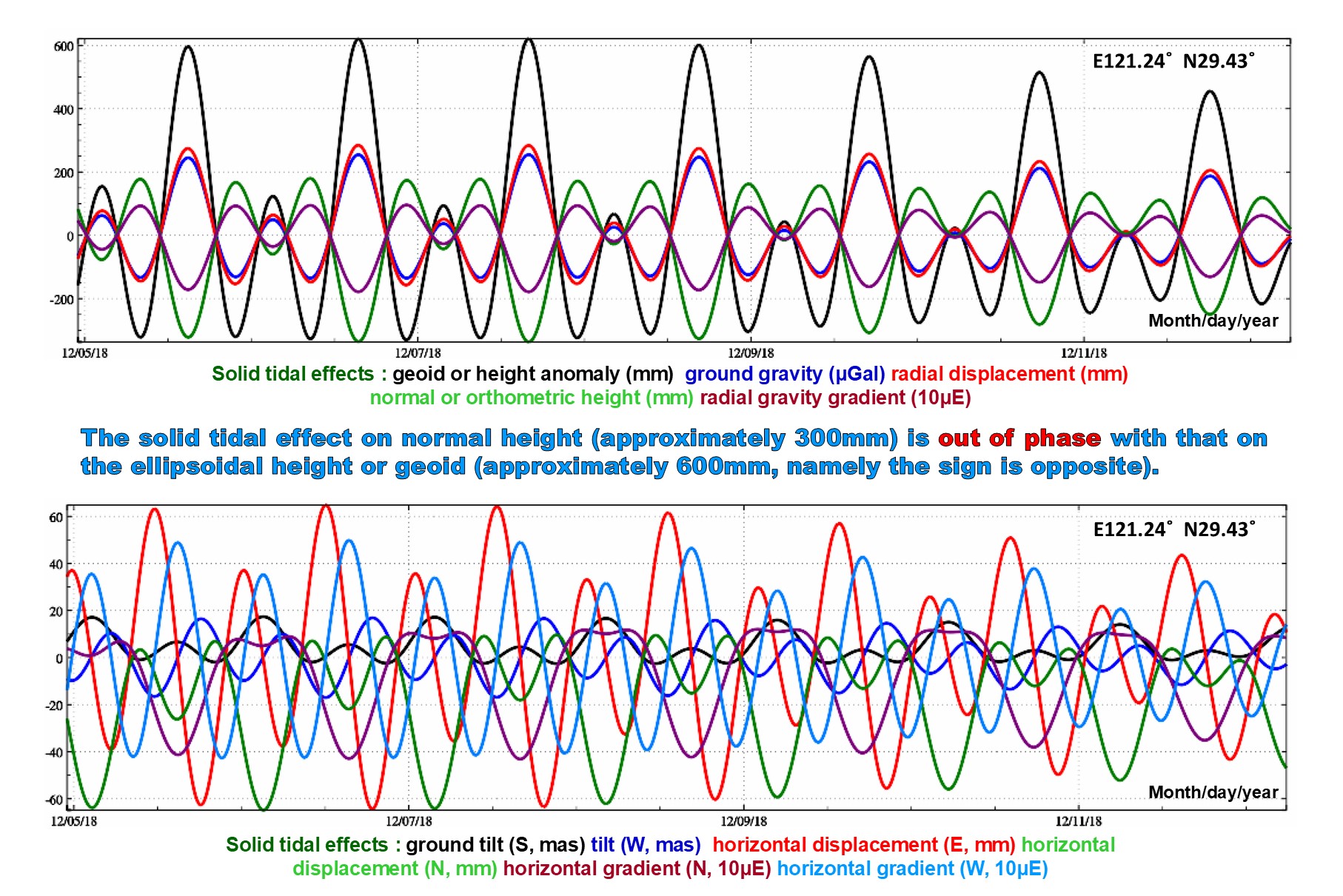 The calculation point can be on the ground, low altitude, satellite, ocean or underwater space. The geodetic variations abvove marked with # are valid only when the site is fixed with the solid Earth.